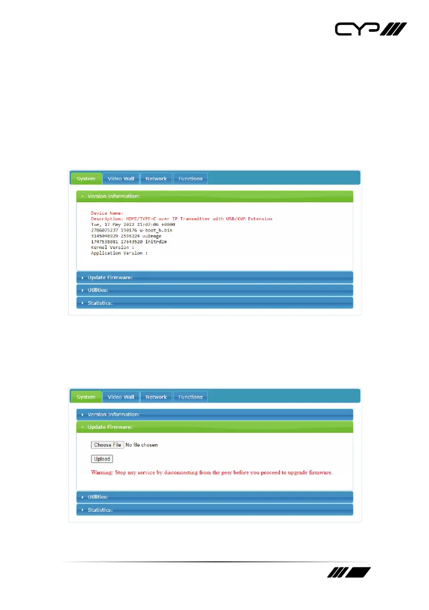 2) Update Firmware: Provides a way to update the unit’s rmware. Click