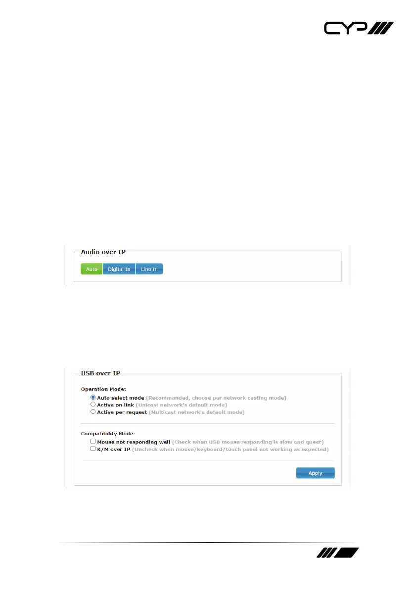 source in the outbound AVoIP stream is selected here. Selecting “Auto”