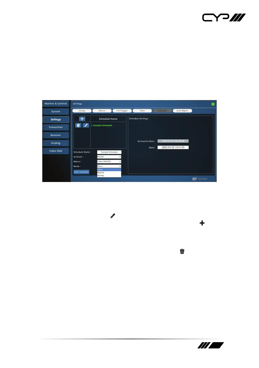 existing schedule event, click on the “Delete” icon ( ) next to the
