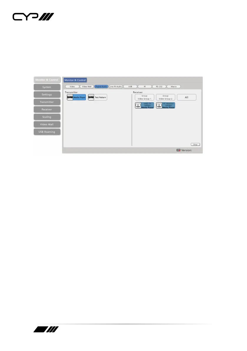 Stop Stream: To stop the digital audio stream on a single receiver,