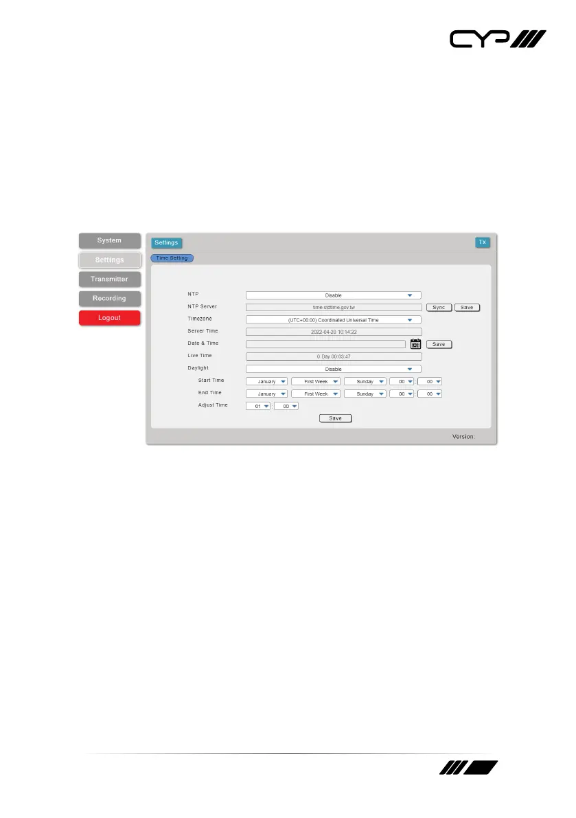 NTP: Enable or disable the use of an NTP server to set the unit’s