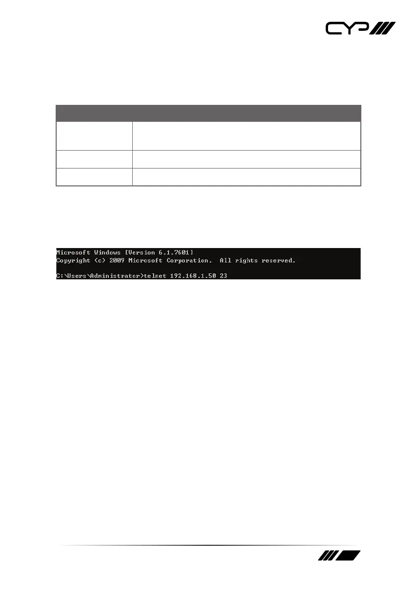 Note 1: If the IP address is changed then the IP address required for Telnet