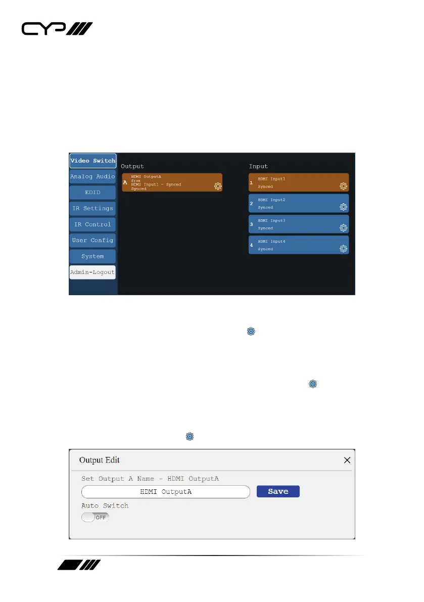 status are also displayed here. Clicking on the gear icon ( ) opens up