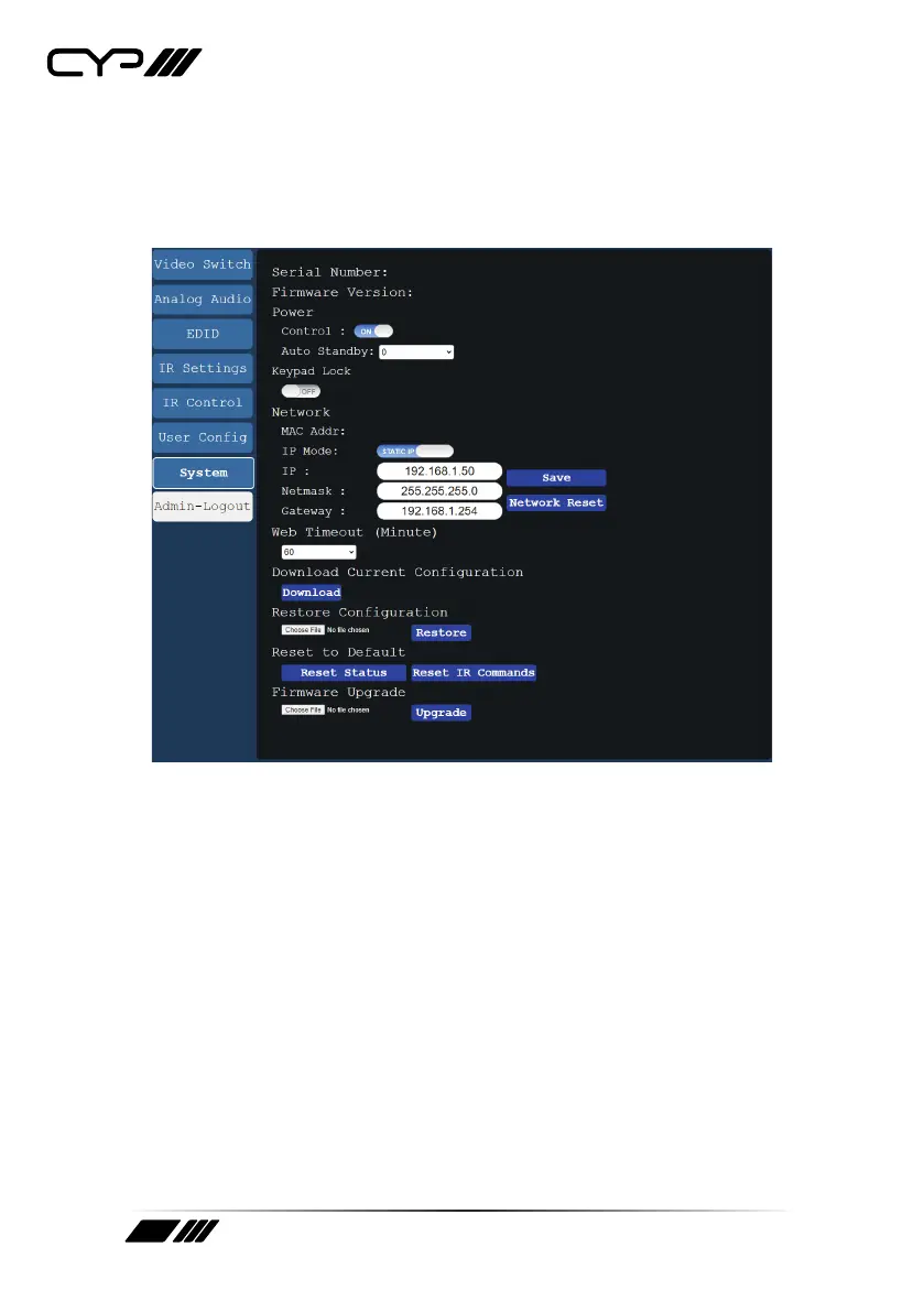 Note: While in standby mode the unit’s WebGUI, Telnet and RS-232