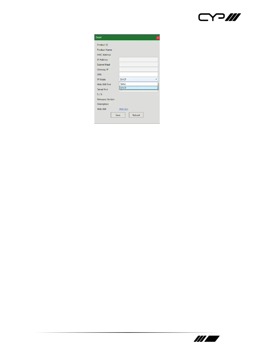 1) IP Mode: If you choose, you can alter the static IP network settings for