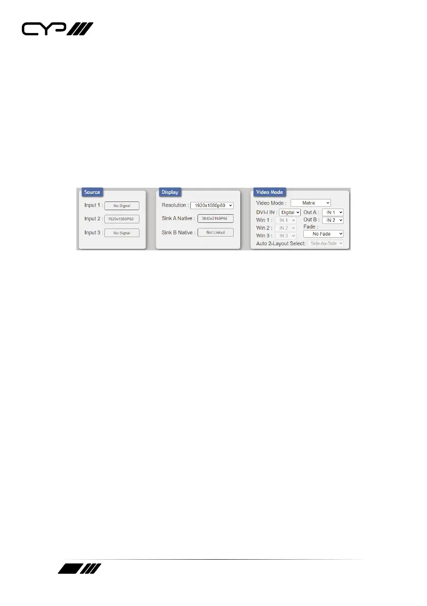 mode. Available options are: Matrix, PiP, PoP, Side-by-Side, Auto,