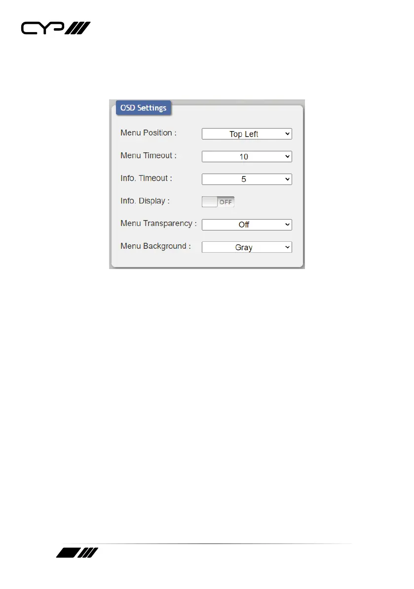 1) Menu Position: Use the dropdown to set the position of the OSD