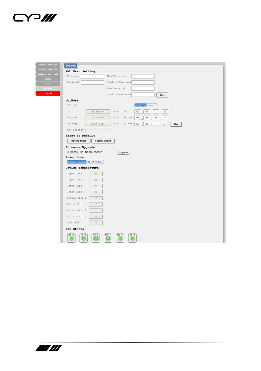 2) Network: The unit’s IP mode may be switched between Static IP