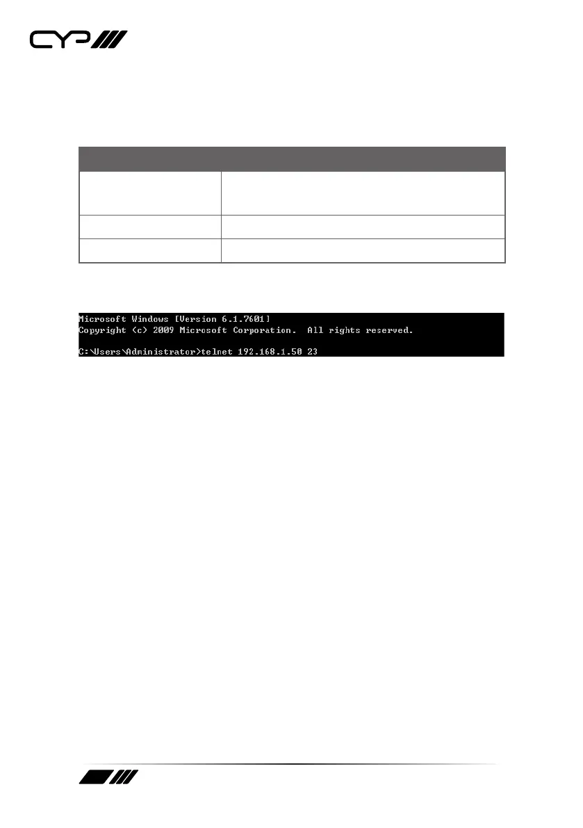 Once in the CLI (Command Line Interface) type “telnet” followed by the IP