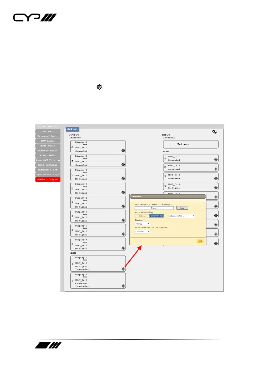 Note: Only HDBaseT outputs may be selected as Mirror sources.