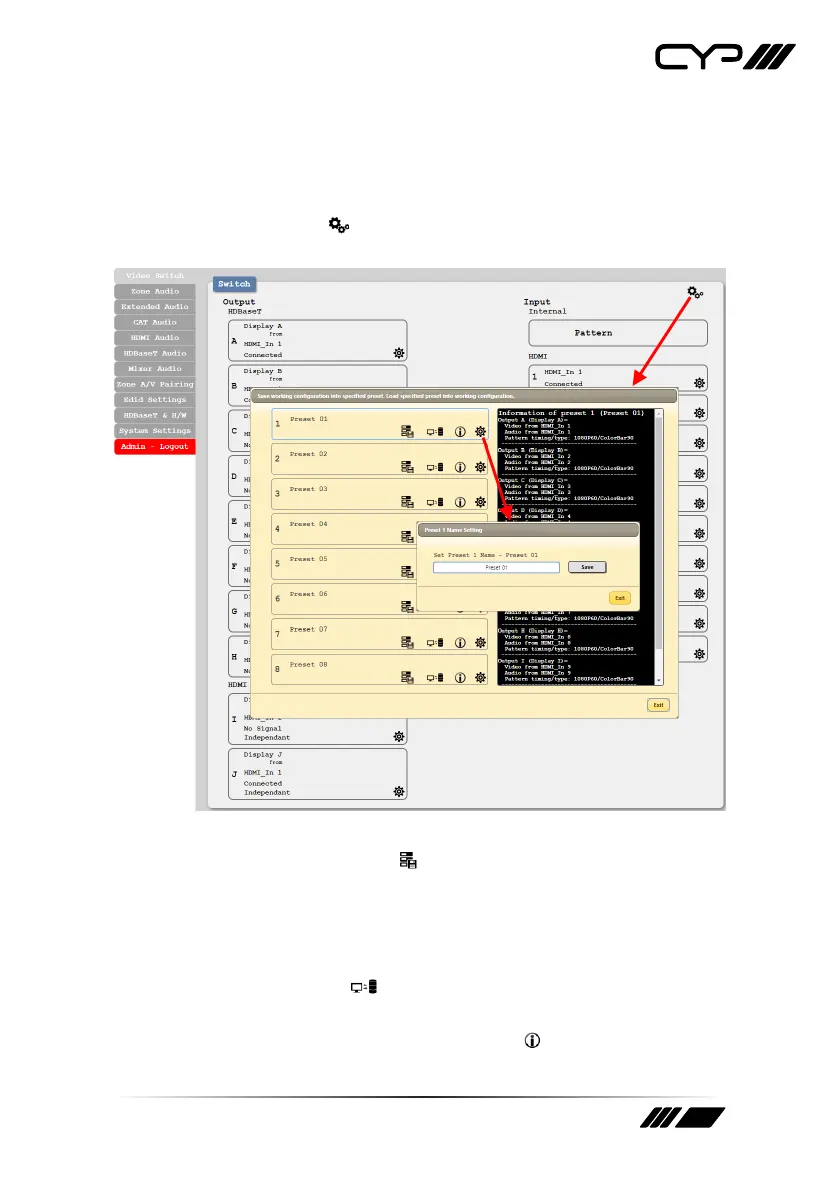 Save: Click the “Save” icon ( ) next to the preferred Preset to store