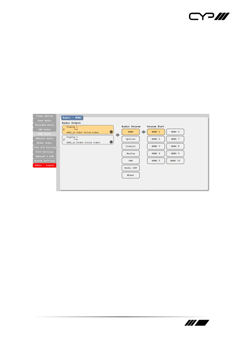 The audio routed to the two HDMI outputs (ports: I & J) and their