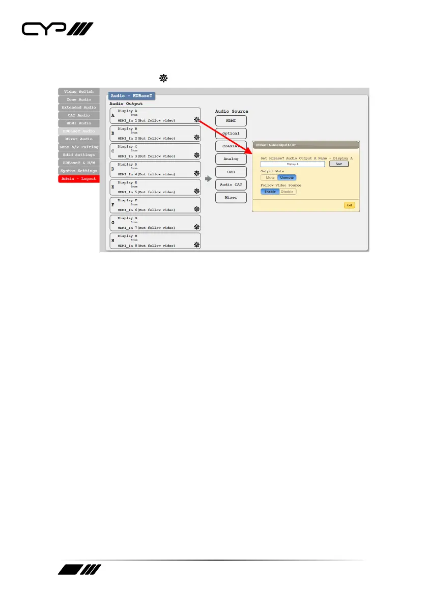 Output Name: The HDBaseT Audio outputs can be renamed here.