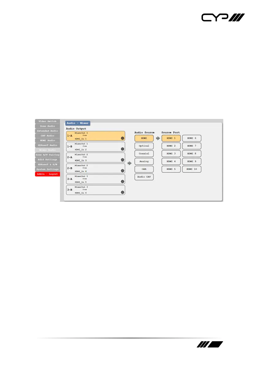 sources. Only 2 sources total may be selected for each mixer. Once a