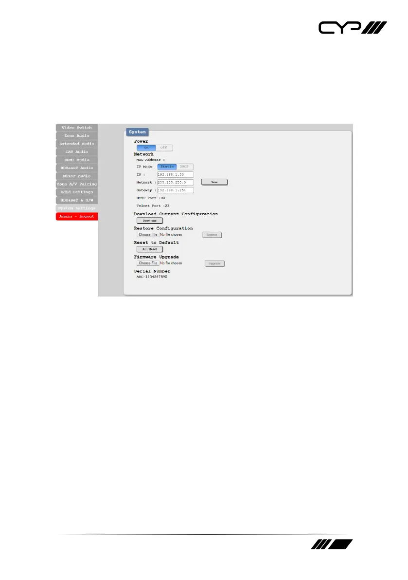 Note: While in standby mode the unit’s WebGUI, Telnet and RS-232