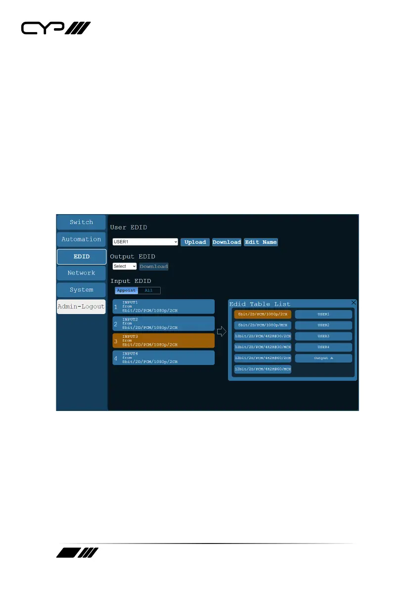 Upload: To upload a User EDID, select the User EDID slot to upload