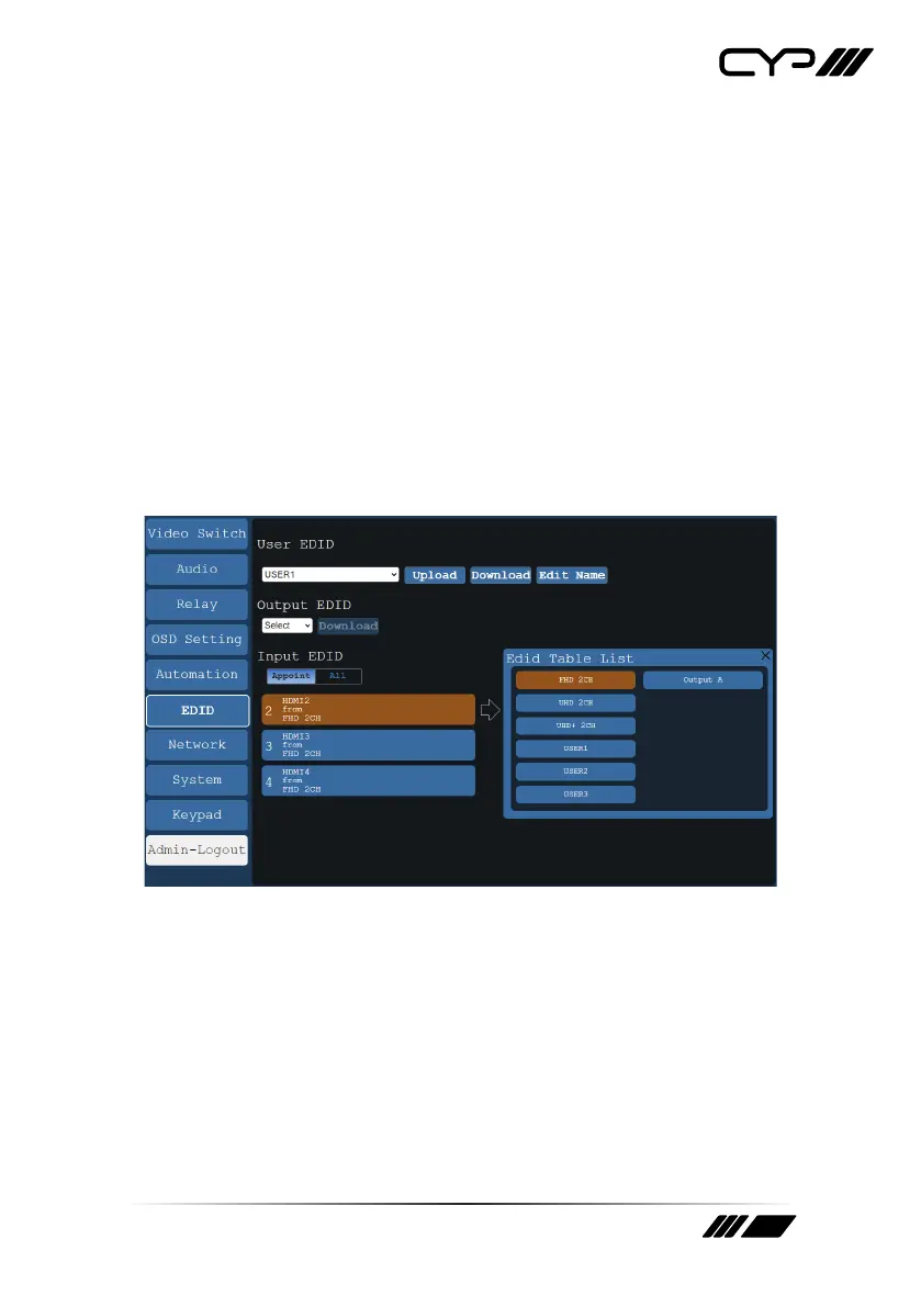 Upload: To upload a User EDID, select the User EDID slot to upload