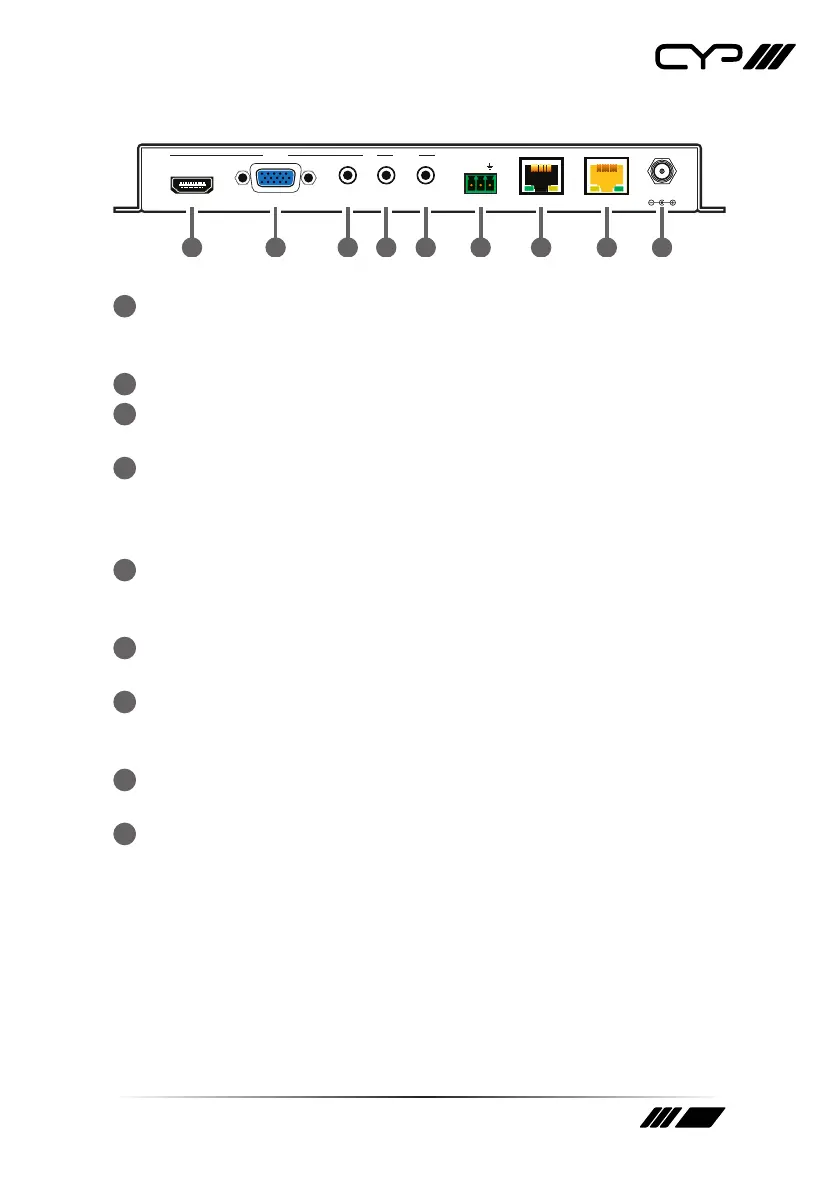 VGA IN: Connect to VGA source equipment such as a PC or laptop.