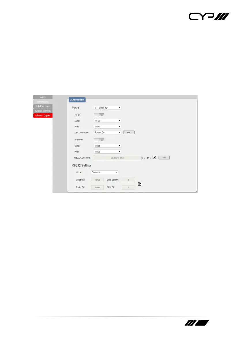 Note: Sending RS-232 commands requires the use of a compatible HDBaseT