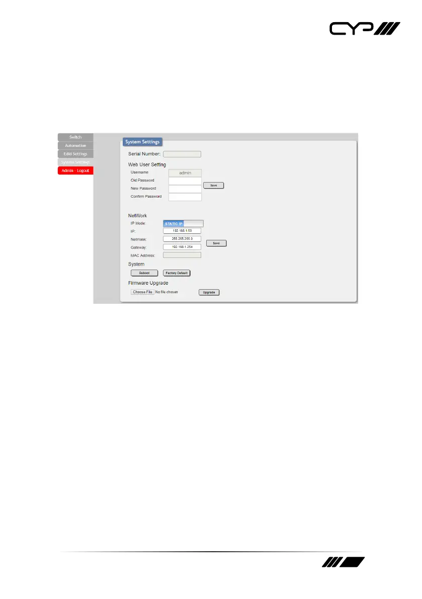 2) Web User Setting: This section provides a way to change the password