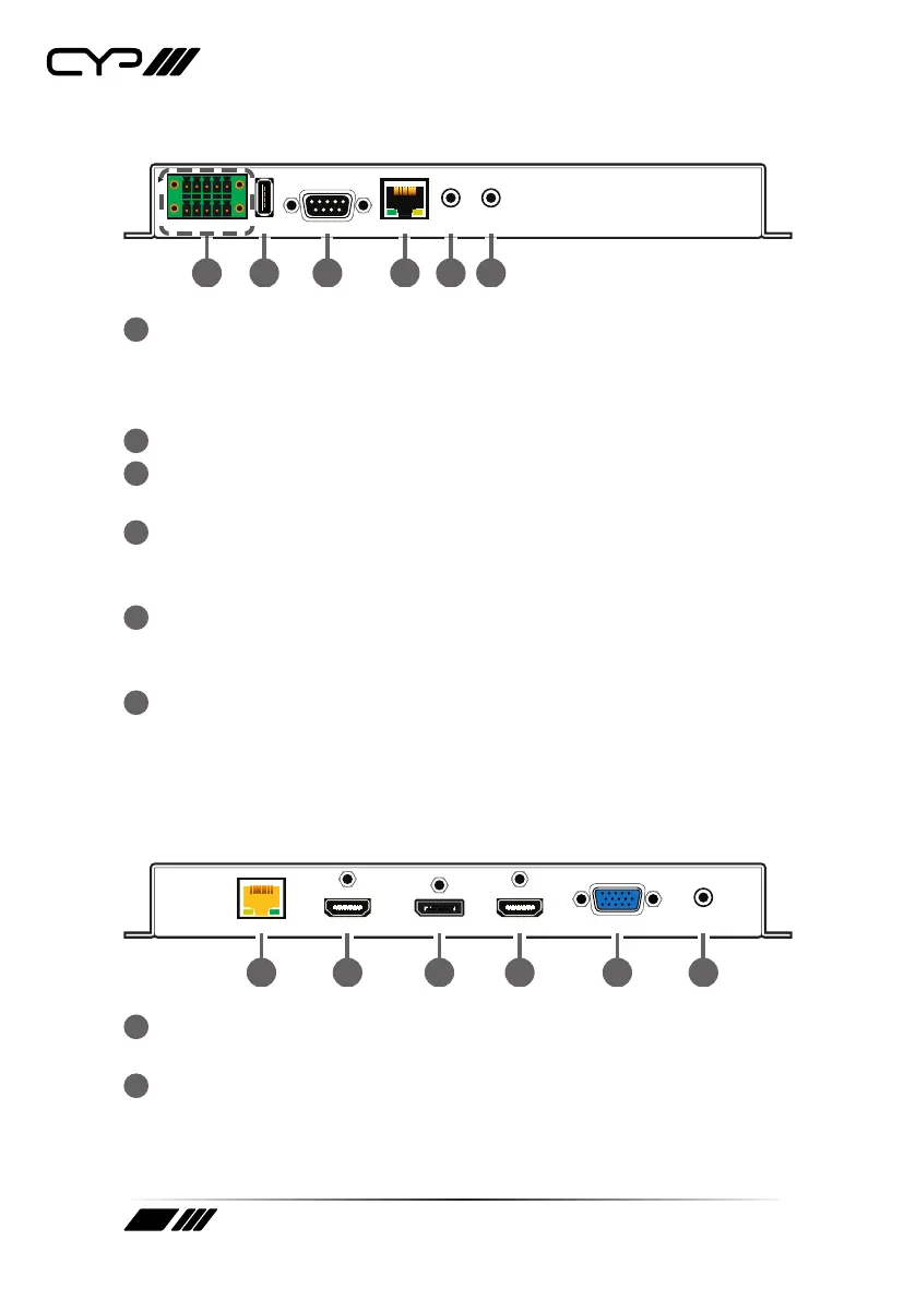 CAT5e/6/7 OUT: Connect to a compatible HDBaseT Receiver with a
