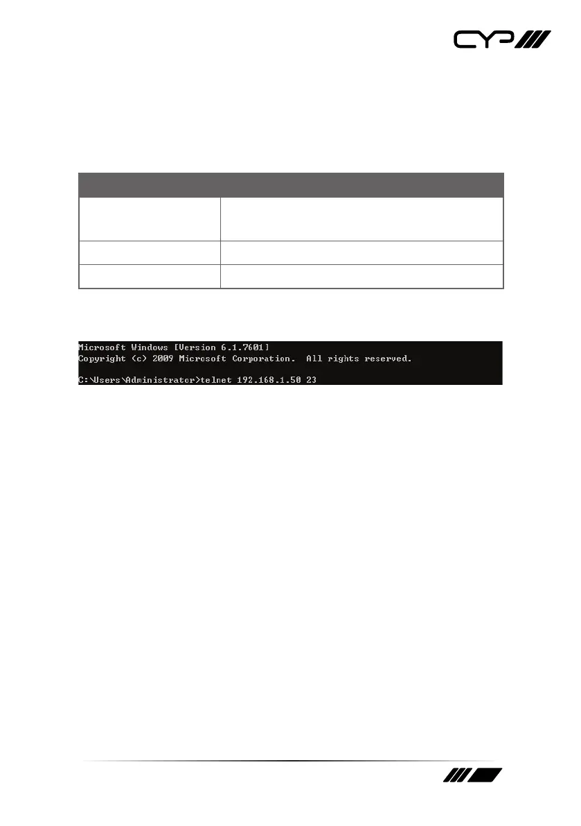 Once in the CLI (Command Line Interface) type “telnet” followed by the IP