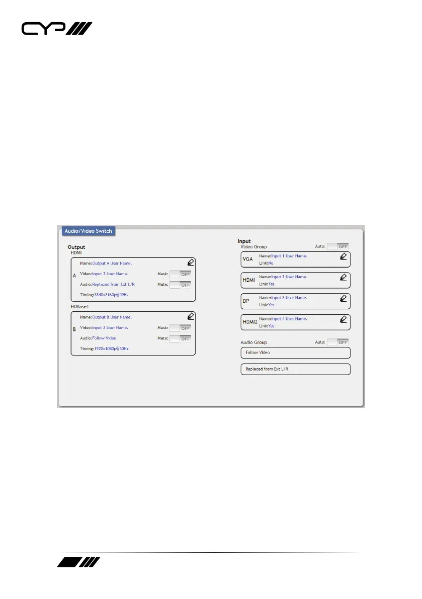 This tab provides A/V routing control, A/V mute controls, and I/O