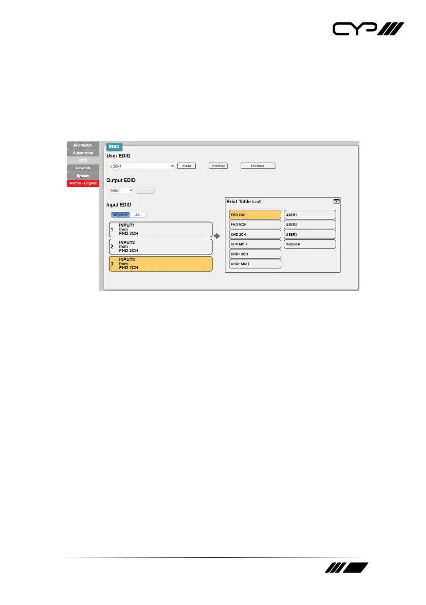 Upload: To upload a User EDID, select the User EDID slot to upload