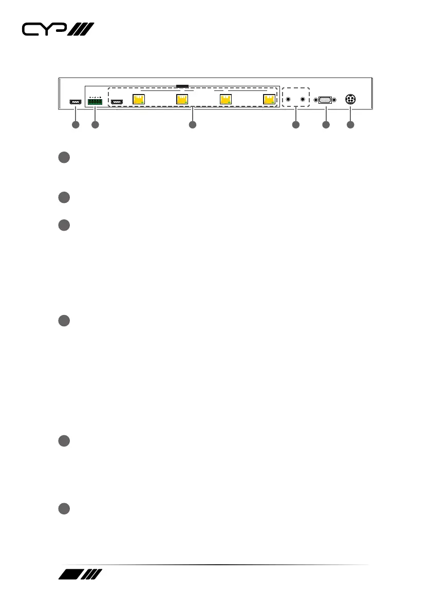 CAT 5e/6/7 OUT A~D Ports: Connect to compatible HDBaseT