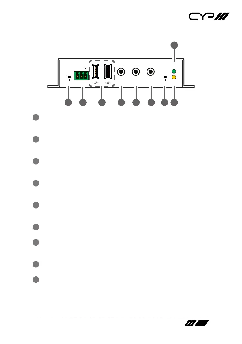 POWER LED: This LED will illuminate to indicate the unit is on and