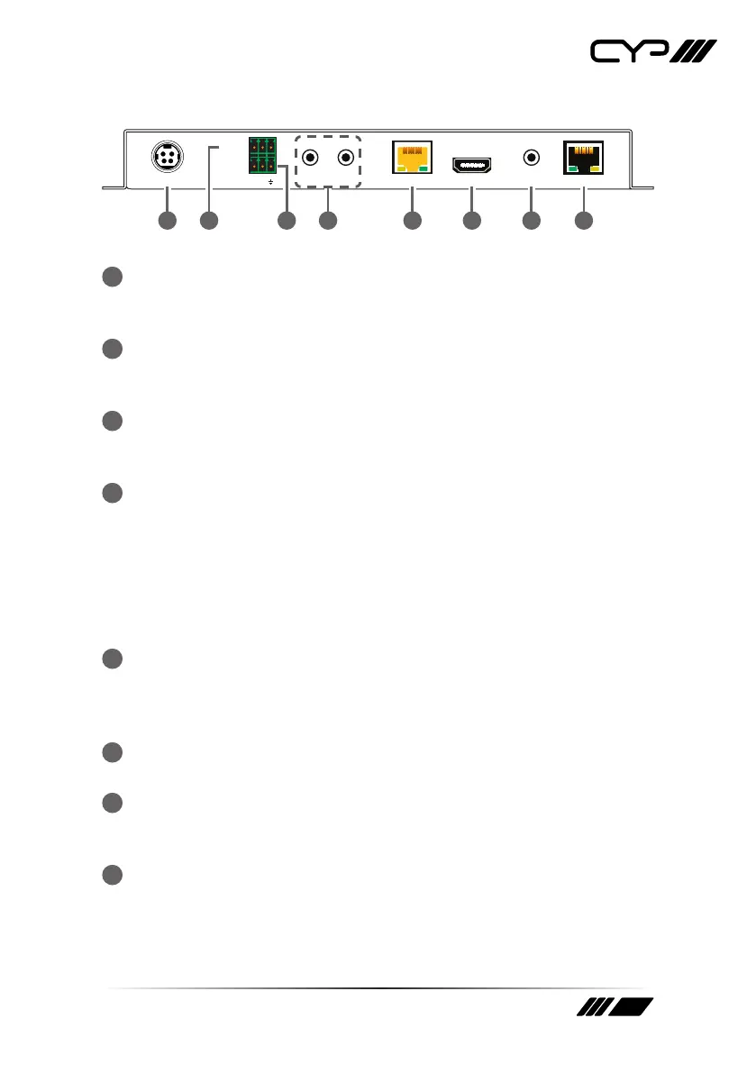 CAT 5e/6/7 OUT Port: Connect to a compatible HDBaseT Receiver