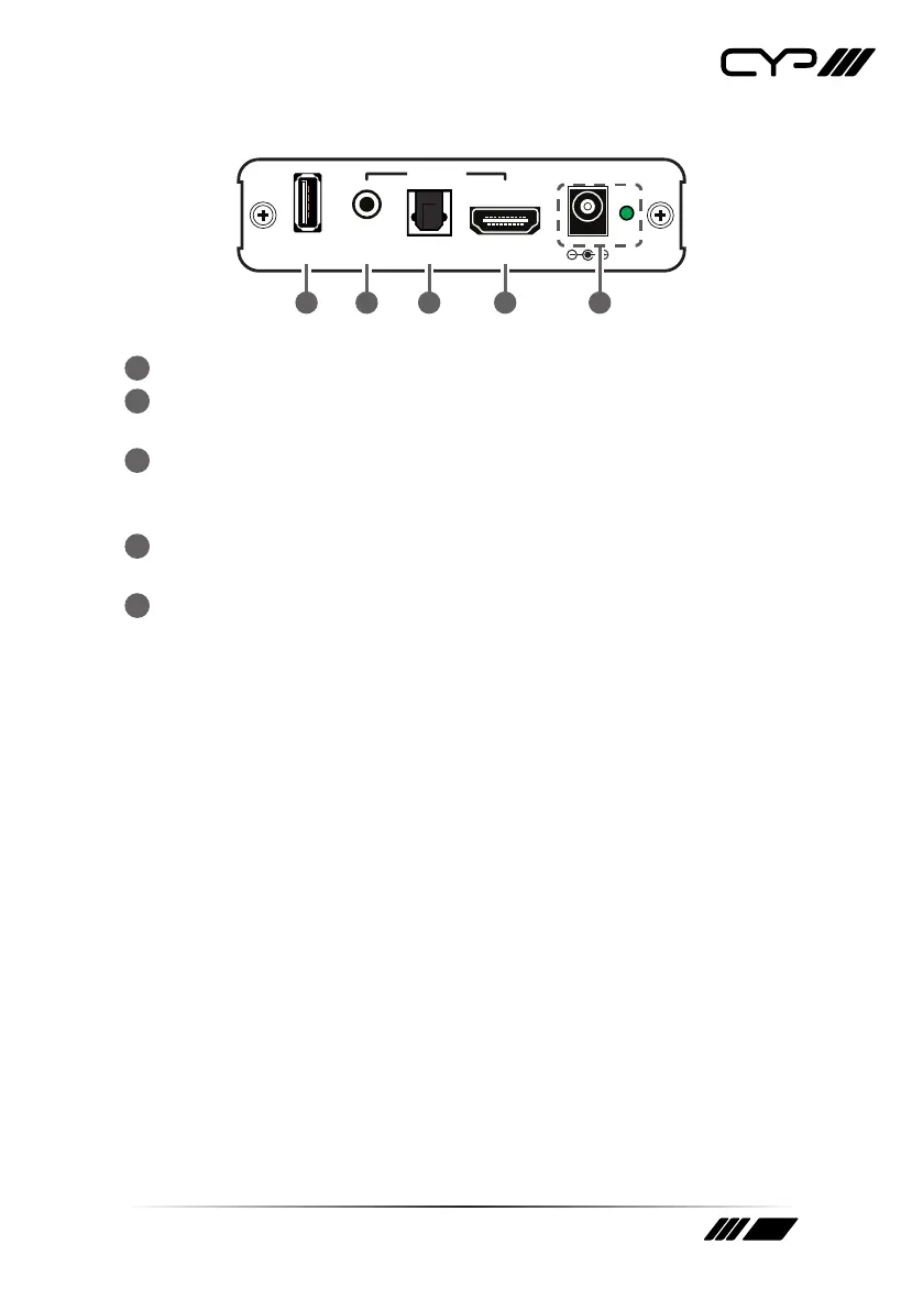 DC 5V & LED: Plug the 5V DC power adapter into this port and