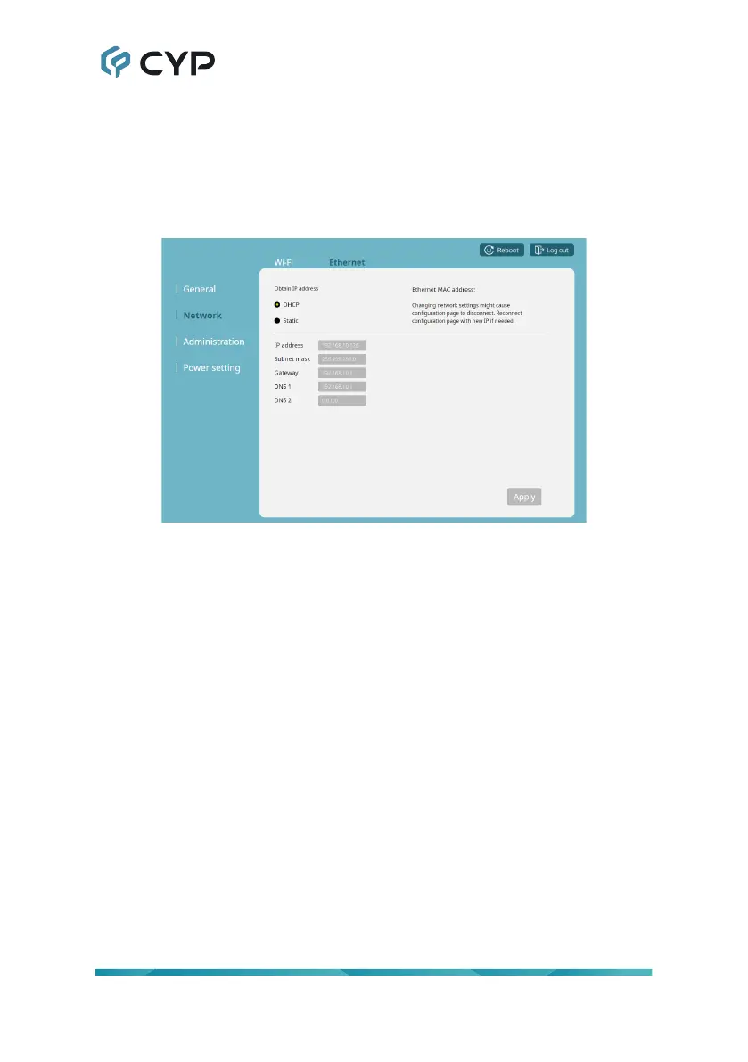 IP address. Selecting “DHCP” will have the unit attempt to automatically