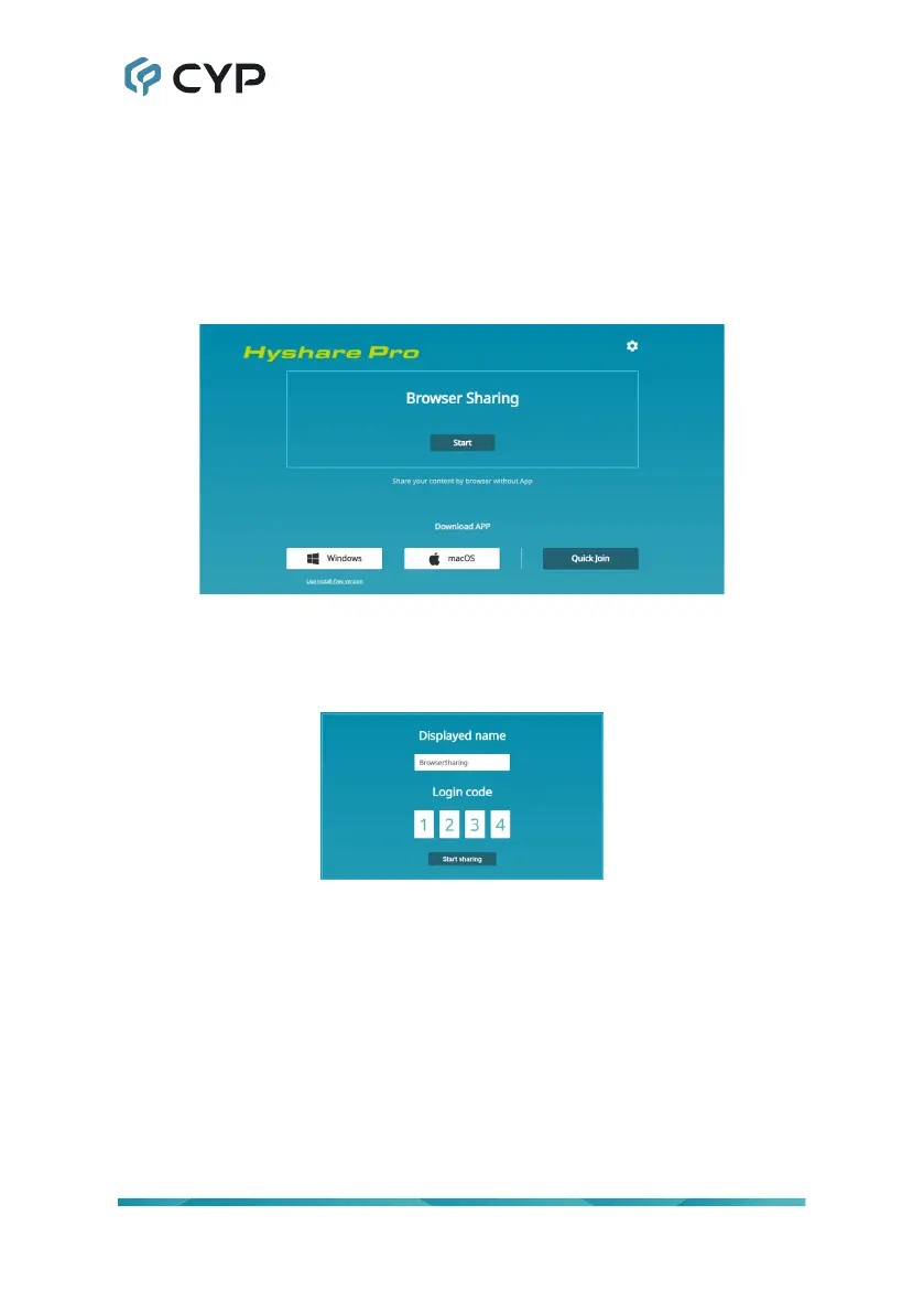 Click the Browser Sharing “Start” button and you will be presented