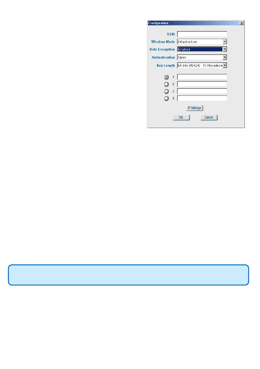 Select Ad-Hoc or Infrastructure mode.