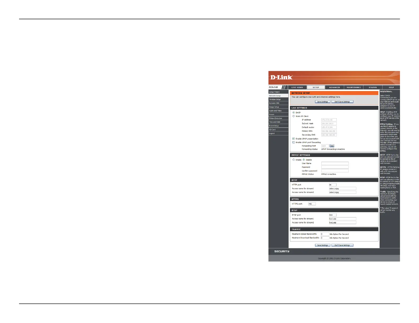 Use this section to congure the network connections for your camera. All relevant information must be entered accurately. After