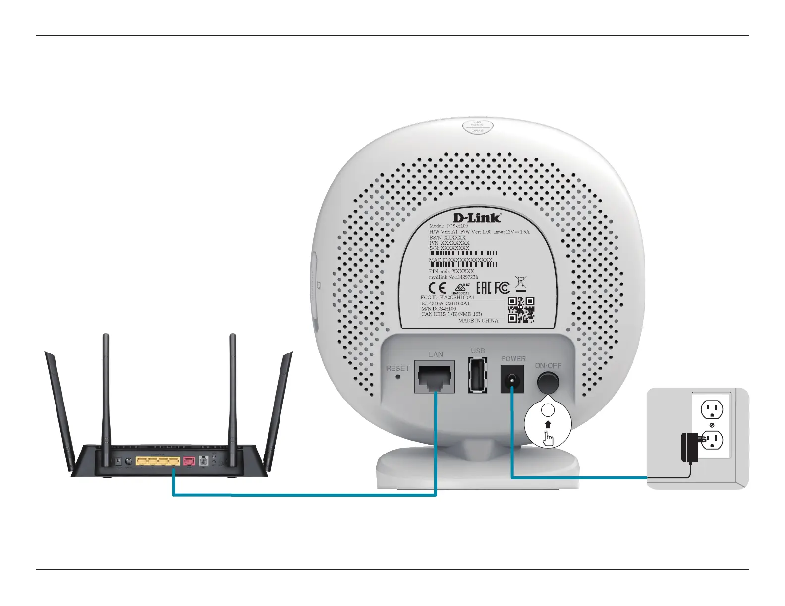 Plug the supplied Ethernet cable from your router or gateway into the port marked 'LAN'.