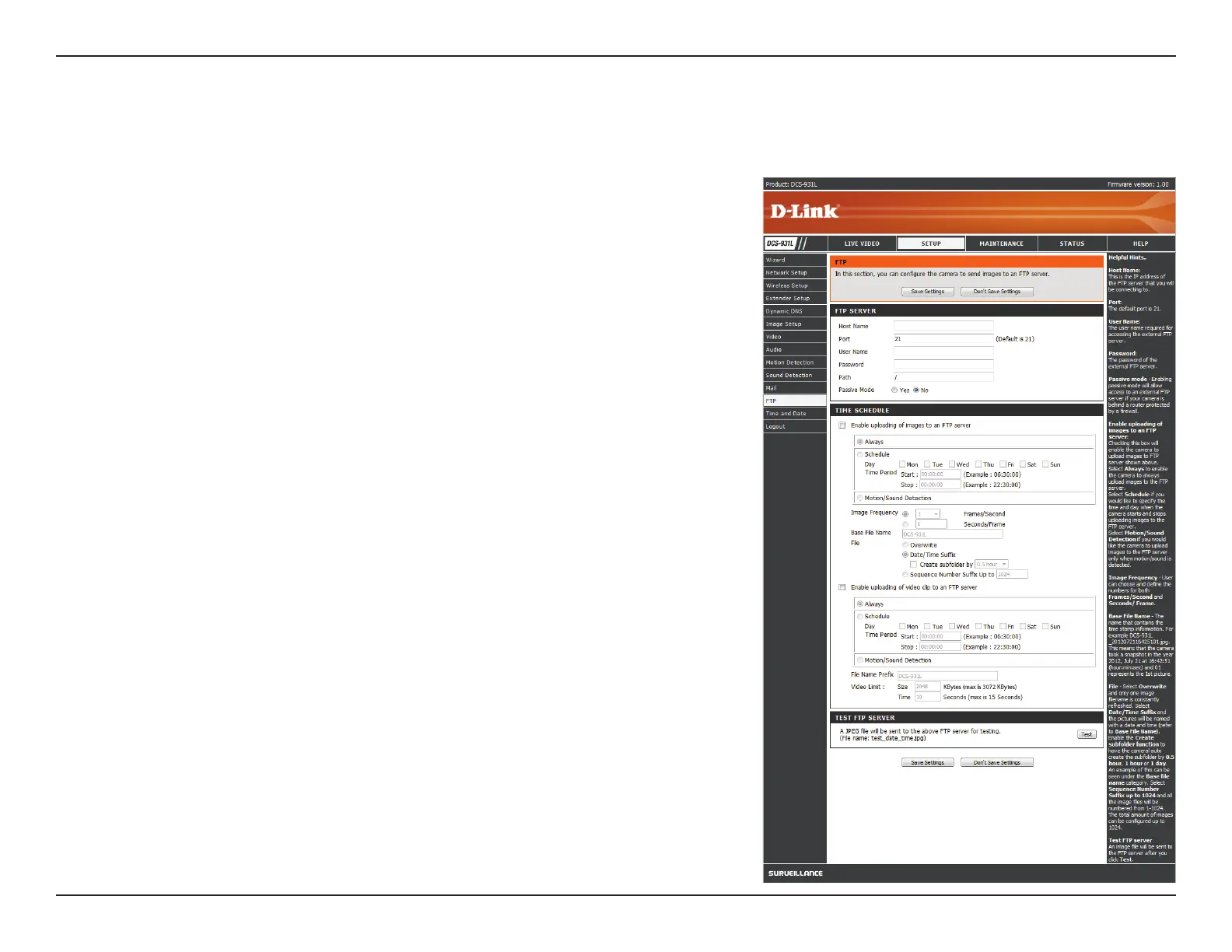 This section allows you to congure your camera to send snapshots and video clips to an FTP server.