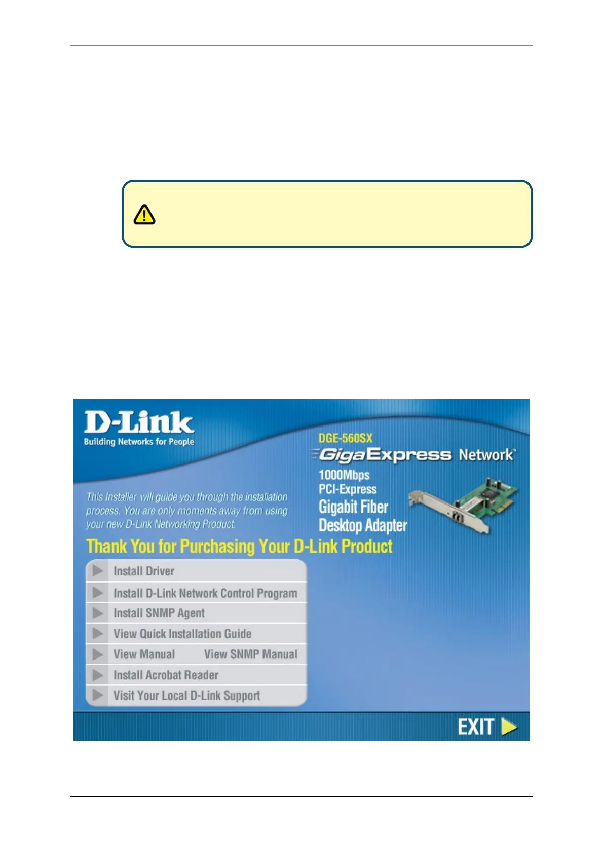 To install the driver, insert the CD-ROM in the CD-ROM drive of the system with the installed adapter. Click