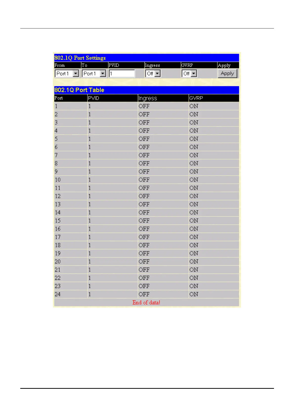 This window allows you to assign a Port VLAN ID (PVID) number, enable or disable the ingress filtering