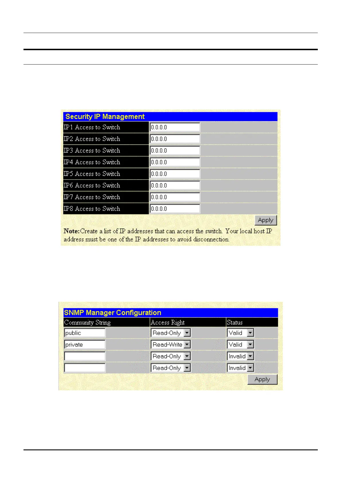 To use the functions on this window, enter the appropriate SNMP information. You may enter up
