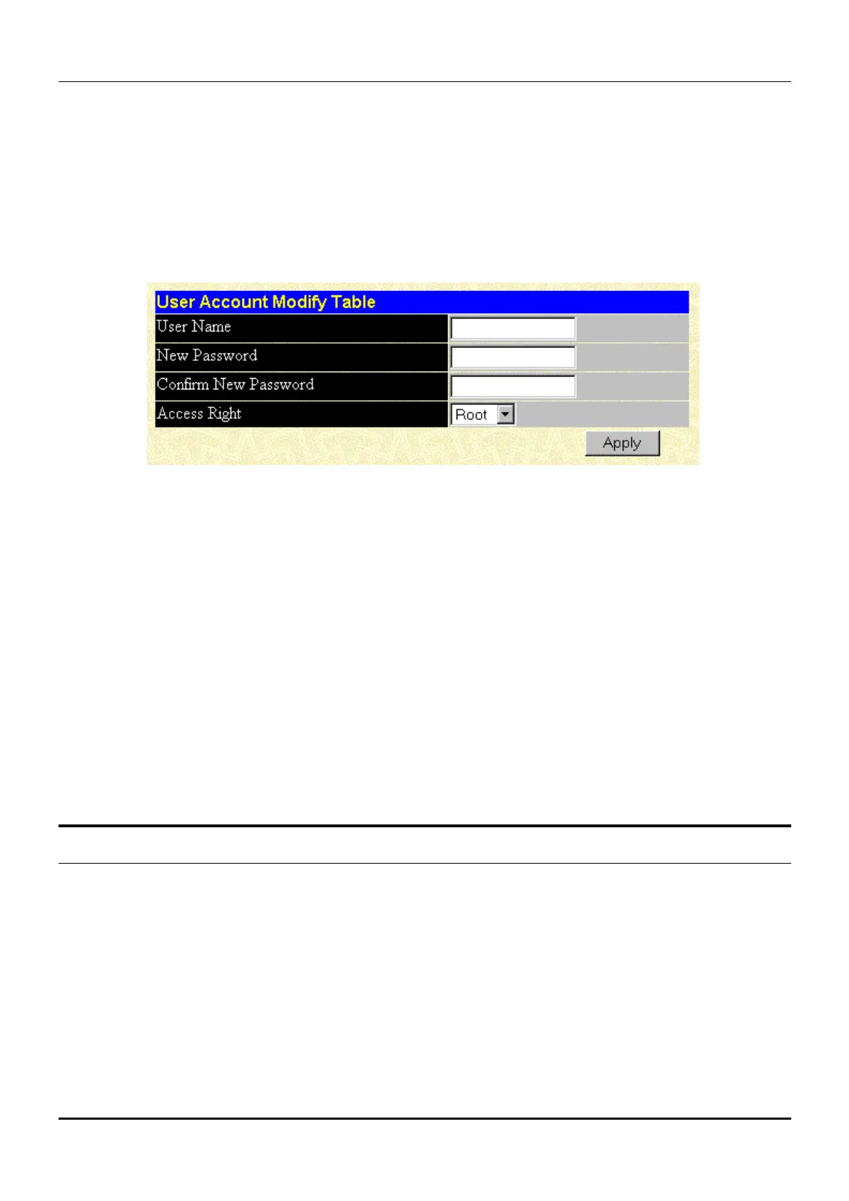 • Access Right – Displays the current access level assigned to each corresponding user. There are