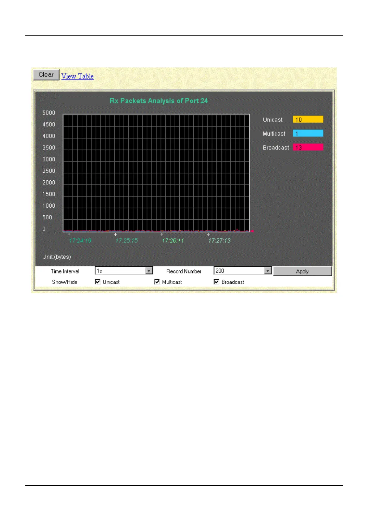 Figure 7-29. Rx Packets Analysis window for UMB_cast (Line Chart)