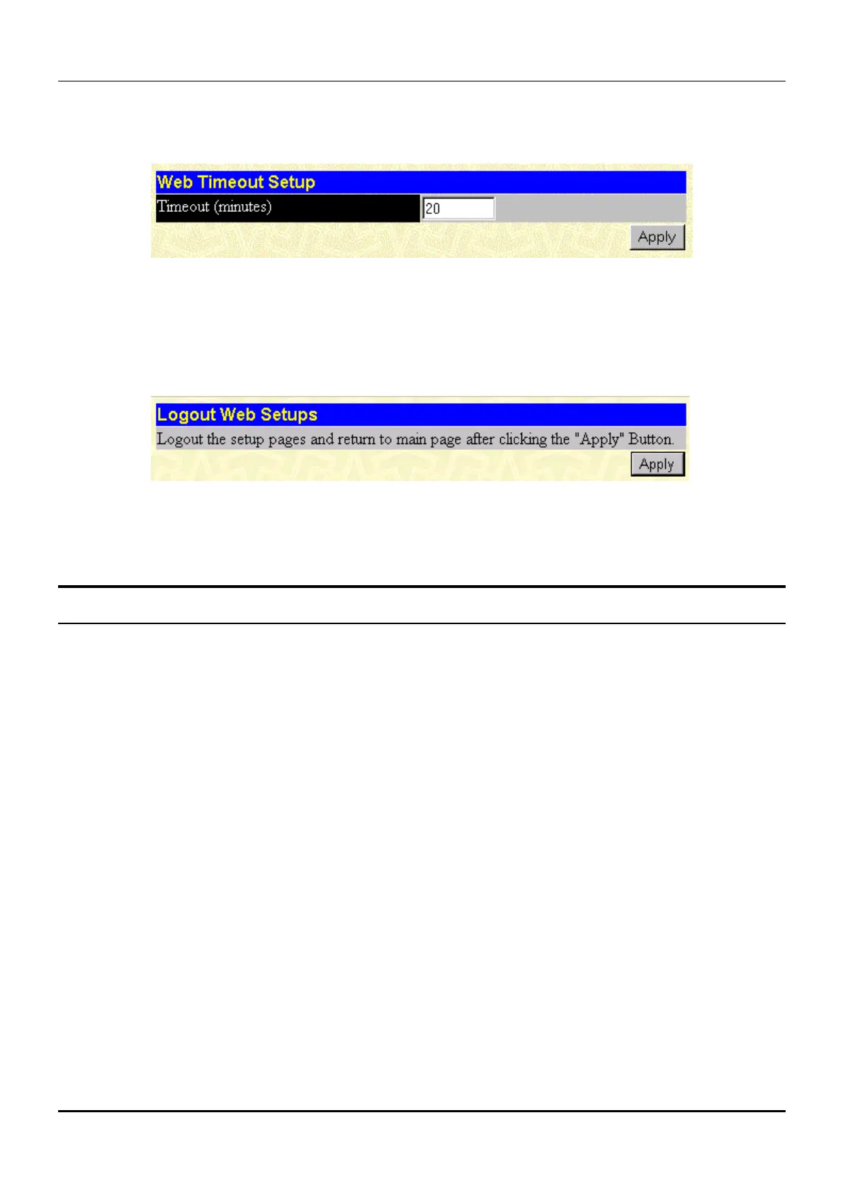 To use this Web timeout feature, enter the desired age-out time and then click Apply.