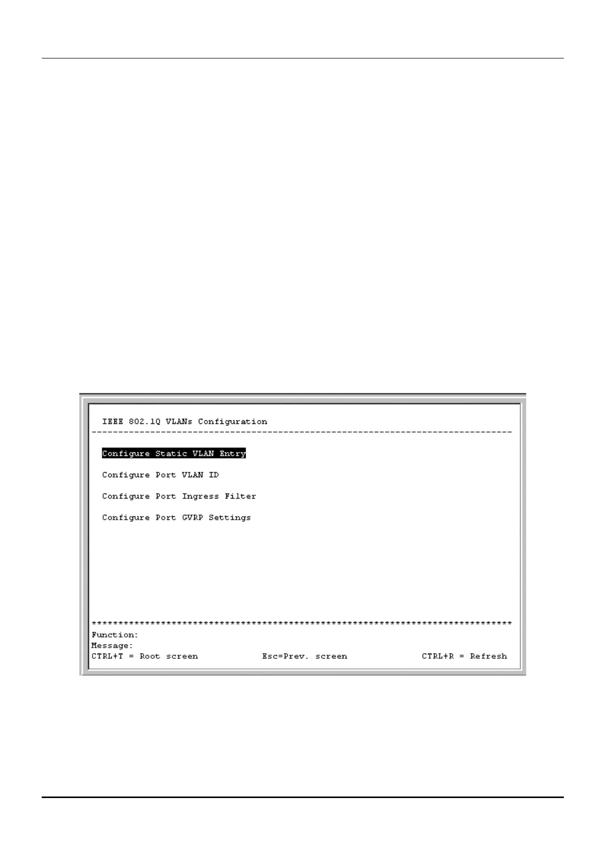 802.1Q VLAN support. Highlight Configure VLANs from the Configuration menu and press Enter.