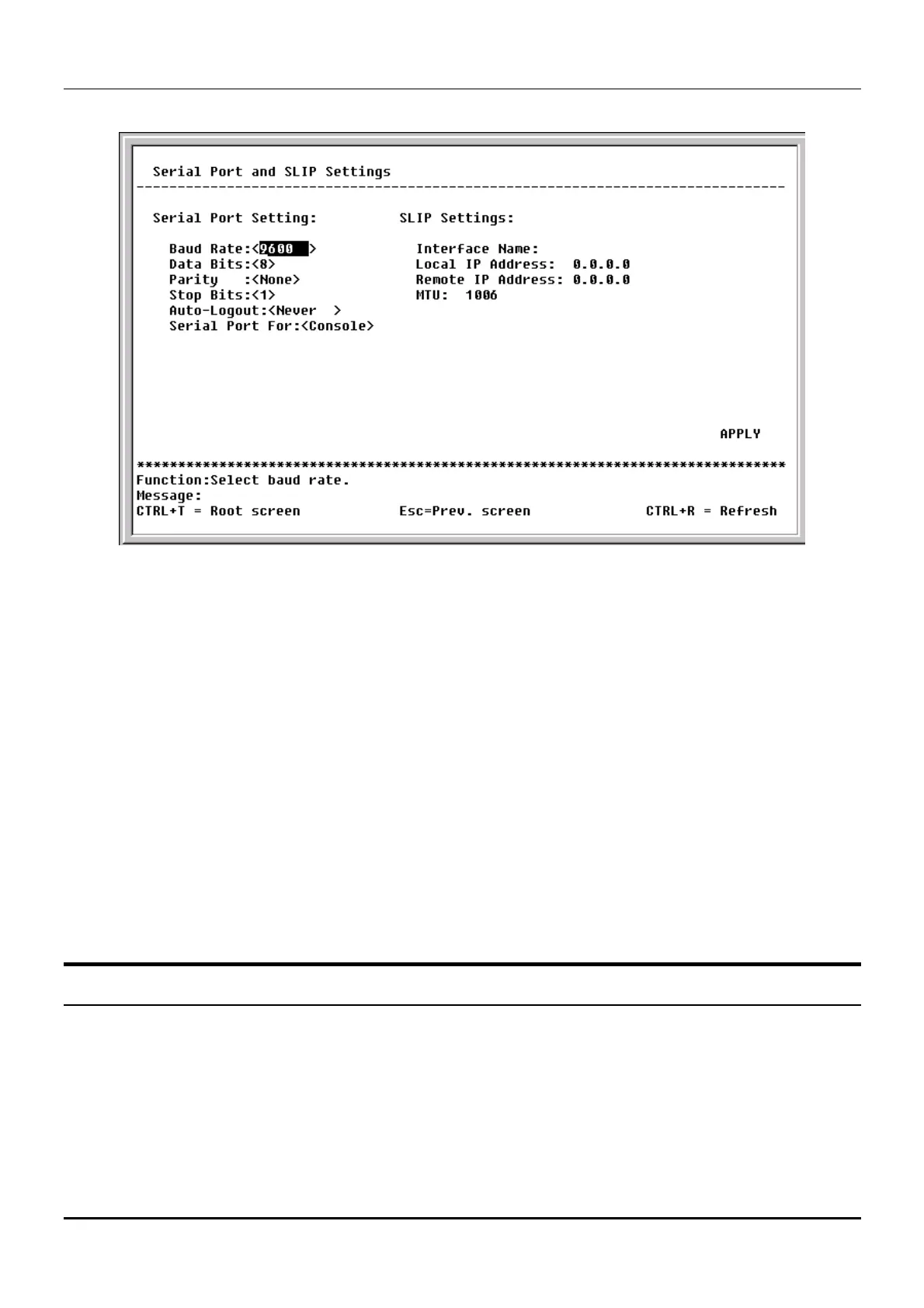 • Serial Port For:<Console> – Change this field to SLIP and enter the appropriate information