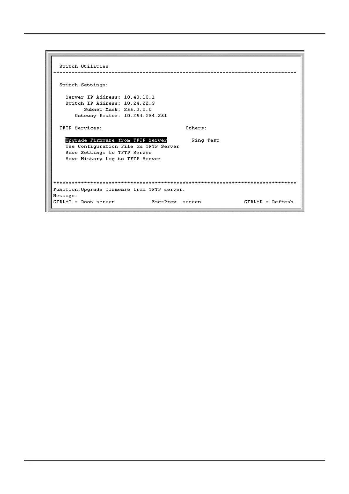 To update the switch’s firmware, highlight Upgrade Firmware from TFTP Server and press Enter.