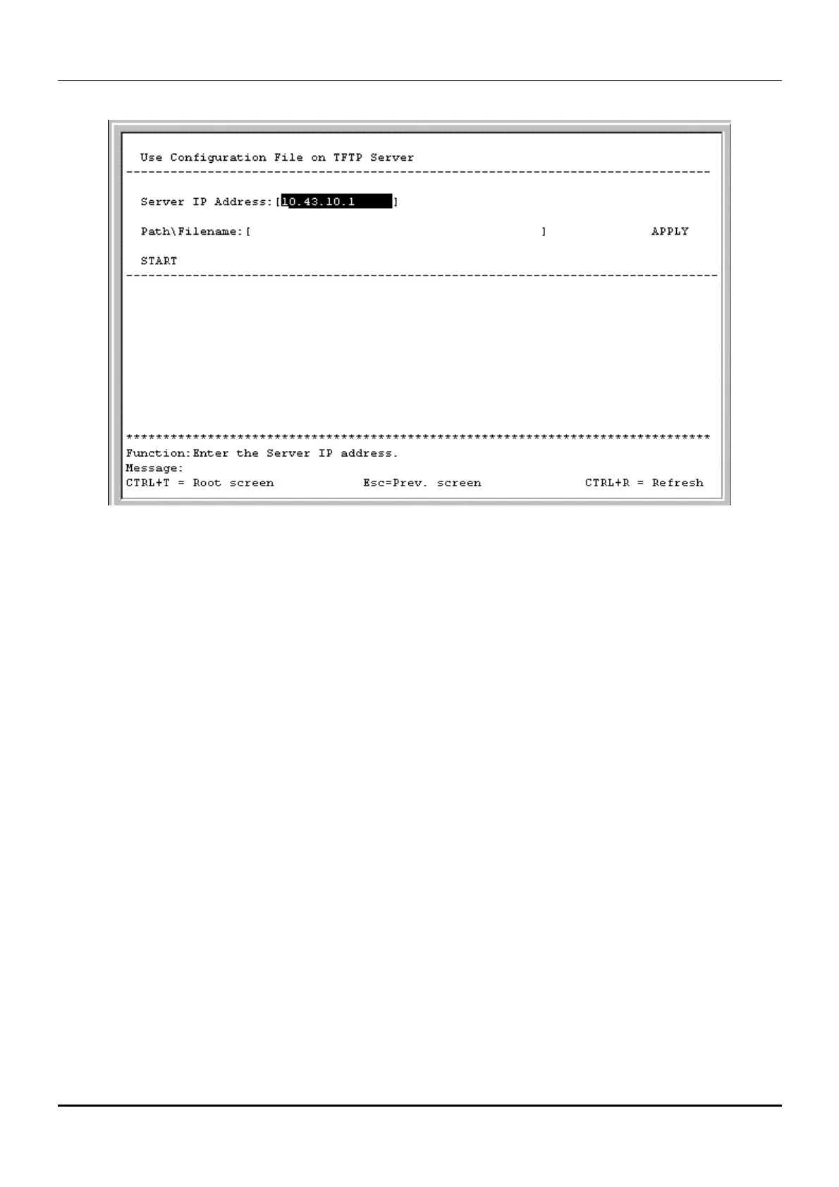 Highlight APPLY and press Enter to record the IP address of the TFTP server. Use Save Changes from