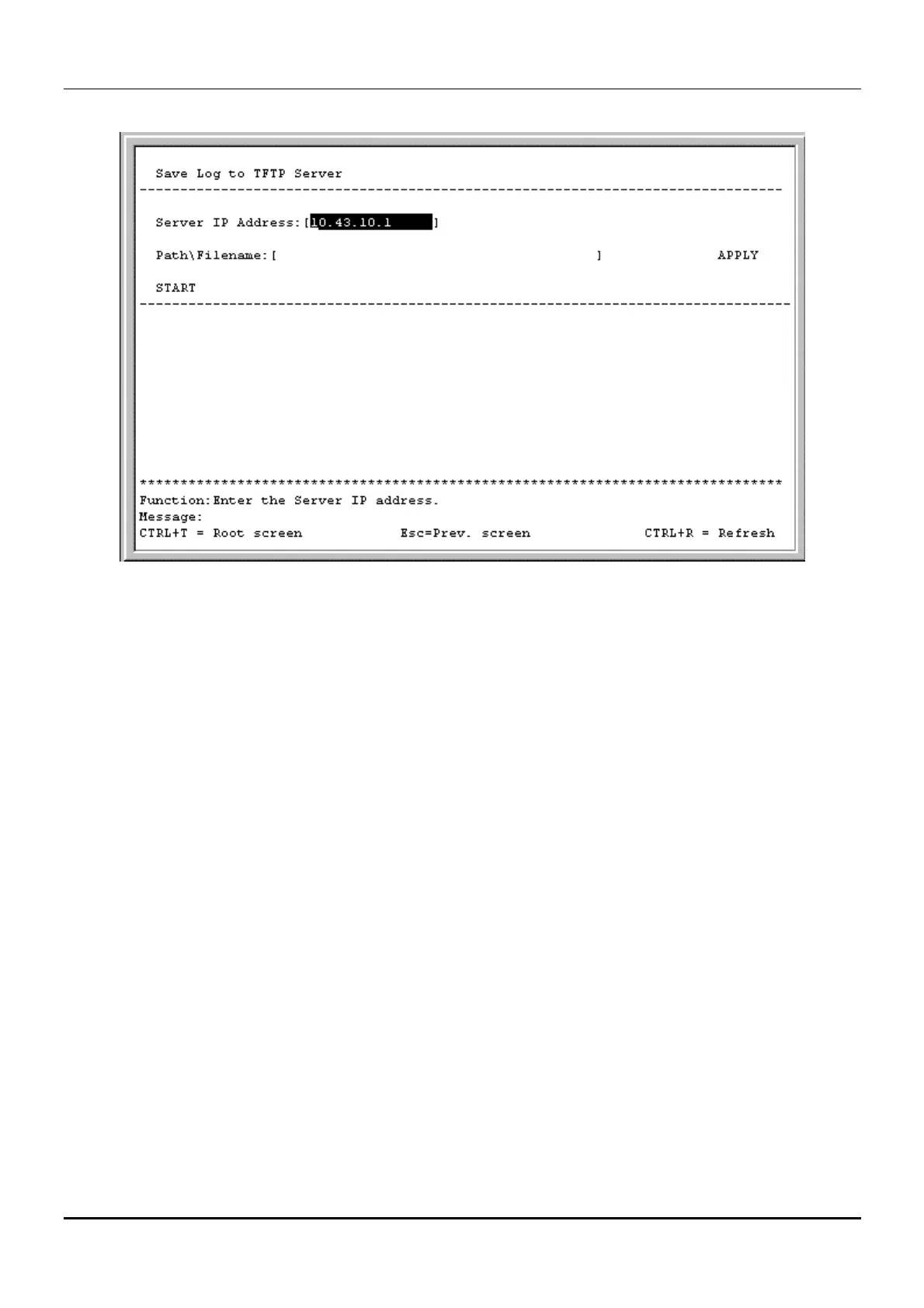 server. Highlight APPLY and press Enter to make the changes current. Highlight START and press