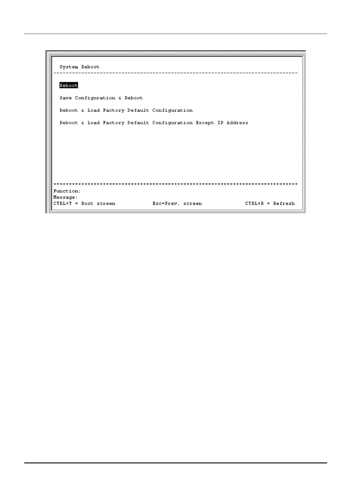 • Reboot & Load Factory Default Configuration Except IP Address – Restarts the switch using the